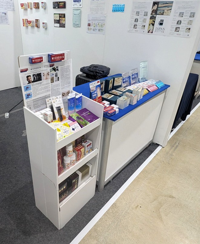 キャリーバッグに入れて持ち運びが出来るので、海外出張でも持っていくことが出来ました。組み立ても簡単ですぐに現地で作ることが出来ました。特に強度などには問題なく会期中使用することが出来ました。ディスプレイの高さも展示台とのバランスが良く、出展ブースに来てくれた方々にもしっかり商品をアピールすることができました。