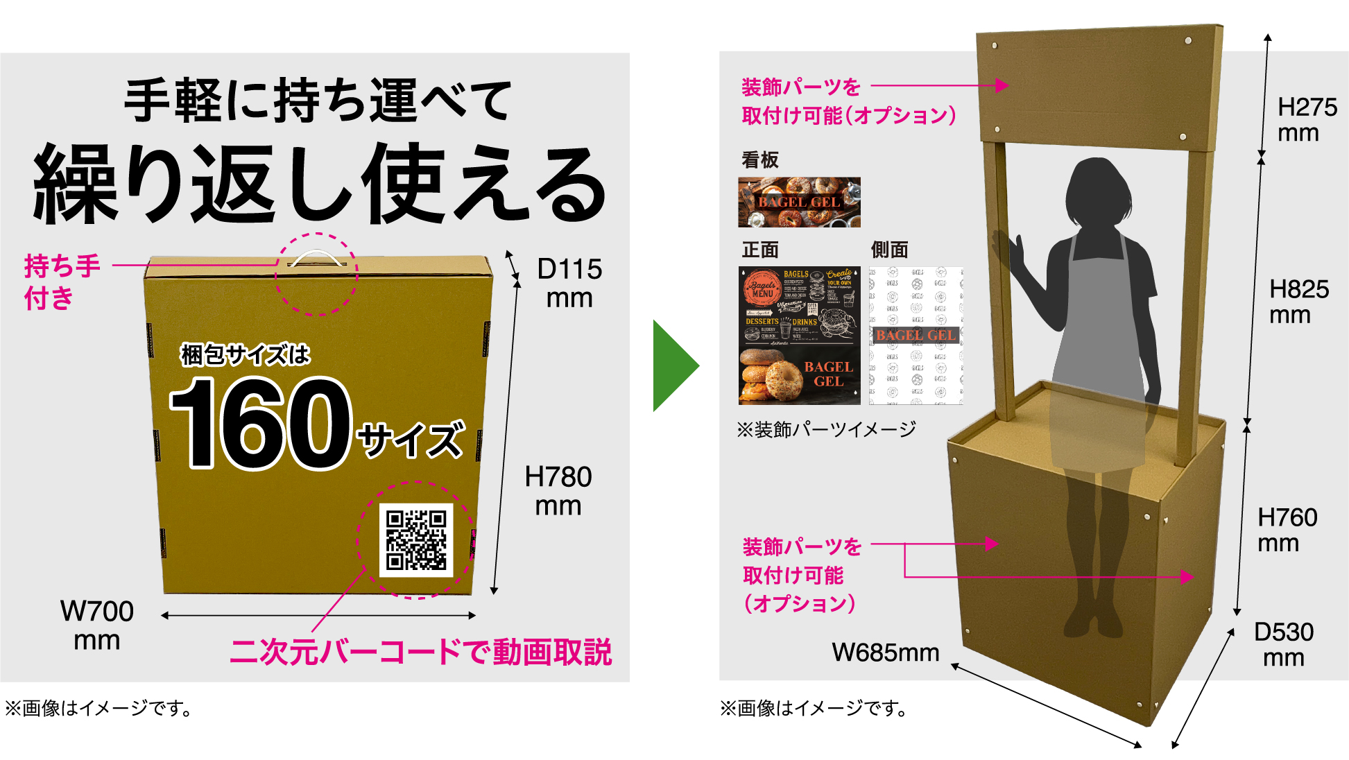 *1:段ボール製の為、屋外且つ天候の悪い環境下での使用には不向きです